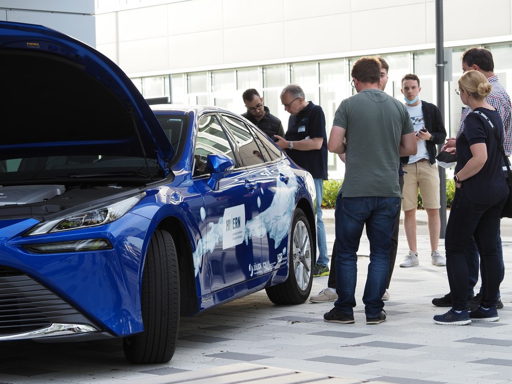 "Open doors!" was already the message in front of the entrance door: Here, the Toyota Mirai, our hydrogen-powered staff vehicle, was presented. Visitors were able to talk directly with researchers from HI ERN about hydrogen-powered electric and hydrogen mobility of the future.