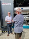 Die Besucher:innen konnten hautnah mehr über die Logistik vor Ort erfahren: Der Wasserstoff ist sicher an den Trägerstoff Perhydro-Benzyltoluol gebunden, der mit herkömmlicher Infrastruktur problemlos gelagert und transportiert werden kann. So verwendet Hydrogenious LOHC Technologies an der Wasserstofftankstelle zwei unterirdische Tanks (je 30 m³), was viel Platz spart und die Bevorratung von Wasserstoff in Mengen von 1.500 Kilogramm ermöglicht.