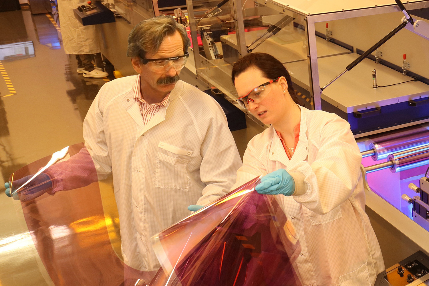 In der „Solarfabrik der Zukunft“, einer Forschungsinfrastruktur des HI ERN, werden druckbare organische Solarmodule erforscht.Copyright: EnCN/Kurt Fuchs