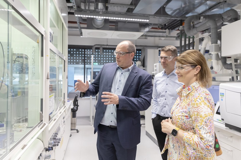 A guided tour rounded off the visit of the two politicians: Katrin Staffler, MdB, and Stefan Müller, MdB, were given an insight into the modern equipment in the laboratories of the new research building, which was completed just two years ago.